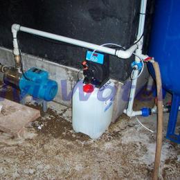 Jedná se o úpravu vody ve výkrmně prasat. Pro nadlimitní množství bakterií bylo nainstalováno dávkovací čerpadlo ET - 02/10 digitální časové a vodoměr. V místě instalace se nachází tlaková nádoba, elektrika a potrubí v plastu.