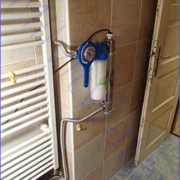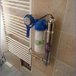 Bakteriologická nezávadnost vody pro 1 byt v bytovém domě. Byl nám zaslán rozbor z obecního vodovodu, kde byly nadlimitní bakterie. Do koupelny byla technikem nainstalovaná UV lampa SC 5. Pro bezproblémový chod UV lampy byl technikem nainstalován mechanický filtr ATLAS 10" G3/4" s 5mcr. vložkou. Zákazník tam měl starý kovový kohout, který tedy technik vyměnil za nový.