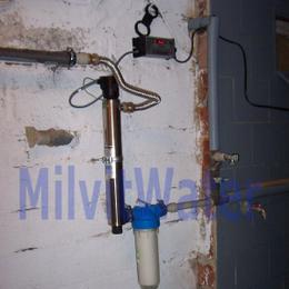 Instalace proběhla u stropu sklepa, kvůli povodním. K UV lampě byl nainstalován Atlas filtr 10" s 5mcr.vložkou pro bezproblémový chod UV