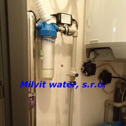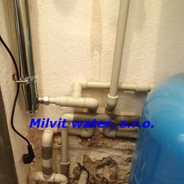 Rodinný dům s kopanou studní, která obsahuje bakterie. Pro odstranění bakterií byla do technické místnosti k tlakové nádobě nainstalována naším technikemUV lampa SC 12. Před UV lampu byl nainstalován Atlas filtr 10" s 5 mcr.vložkou pro zachycení veškerých nečistot. V místě instalace se nachází tlaková nádoba, tlakový spínač a elektrika byla vyřešena prodlužovací šňůrou.