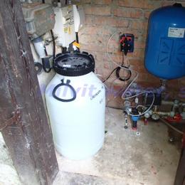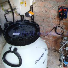 Dezinfekce vody pro pionýrský tábor o 60-70 osob. Voda obsahuje celkový výskyt bakterií >200-300 KTJ/ml. Do technické místnosti u vodárny bylo nainstalováno dávkovací čerpadlo časové ET 02/06. V místě instalace se nachází elektrika, kovové potrubí, tlaková nádoba a tlakový spínač.