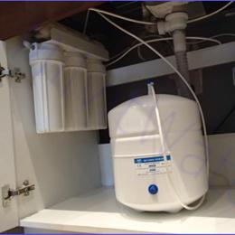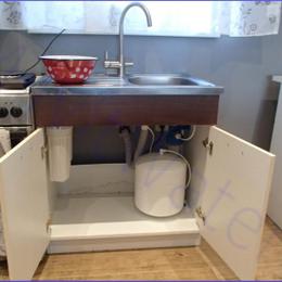 Úprava vody rodinného domu. Rozbor vody ukázal nadlimitní dusičnany 170 mg/l (MH 50 mg/l, kojenci do 15 mg/l). Do kuchyňské linky jsme nainstalovali Reverzní osmózu, která funguje 65% účinností. Pro úplné odstranění dusičnanů jsme nainstalovali ještě Anexový filtr 10".