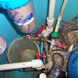 Rodinný dům s vodou ze studny s vyšším obsahem kalu ve vodě způsopbený pravděpodobně jemným bahýnkem. Za tlakovou nádobu, která byla umístěna v plastové šachtě, byly nainstalovány na bypasové zapojení dva Atlas filtry. Atlas filtr vel.10" G1" s 50 mcr. sítovou vložkou na zachycení převážně větších mechanických nečistot a Atlas filtr vel.10" G1" s 5 mcr.vložkou na dočištění a odstranění jemného kalu z vody. Umístění nebylo možné provést na jiném místě než venku v šachtě, protože dům již neměl sklepní prostory s volně přístupným potrubím k napojení filtrů. Ideální by bylo použít pískovou filtraci v automatickém nebo poloautomatickém provedení. Díky malému prostoru a nepřítomnosti odpadního vedení v blízkosti šachty, nebylo prakticky možné bez velkých investic vytvořit jiný způsob filtrace.