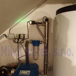 Úprava studniční vody pro potřeby rodinného domu. Odstranění kolísavého železa, vyšší tvrdosti vody a bakterií. Do tehnické místnosti ve sklepě byl nainstalován automatický filtr A35EXtreme, dávkovacího čerpadla 02/06 časového, na odstranění chloru poloautomatický uhlíkový filtr PA20UH. Pro bezproblémový chod filtru byl na vstup nainstalován Atlas filtr 10" se sítovou vložkou a na výstup Atlas filtr 10" s 5mcr.vložkou. Za poloautomatickým filtrem byl vytvořen bypass pro občasnou celkovou chloraci systému na přání zákazníka. V místě instalace se nachází tlaková nádoba, potrubí v plastu, elektrika a odpad. Po dvou měsících byla filtrační sestava doplněna o UV lampu LUXE 12.
