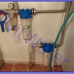 Jedná se o úpravu vody pro potřeba chaty využívanou na rekreaci. Dle rozboru vody byl zjištěný nadlimitní mangan 0,482 mg/l (MH 0,05 mg/l) a nevyhovující zápach. Do místnosti pod schodištěm jsme nainstalovali odželezňovací-odmanganovací filtr A35 EXtreme v kabinetovém provedení. Aby filtr fungoval bez problémů, nainstalovali jsme na vstup Atlas filtr 10" se sítovou vložkou a na výstup Atlas filtr 10" s 5mcr.vložkou. Potrubí plastové, elektrika je v místnosti a odpad bude teprve vyveden.