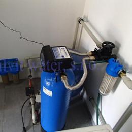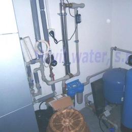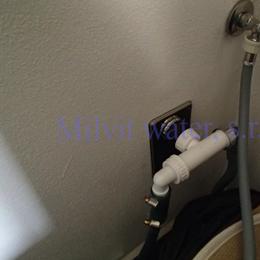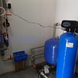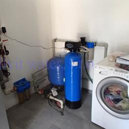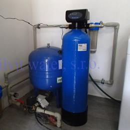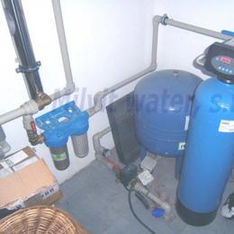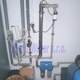Úprava vody v rodinném domě s vrtanou studnou. Rozborem vody byl naměřen nadlimitní mangan 0,2 mg/l (MH 0,05 mg/l). Do tehnické místnosti byl nainstalován automatický filtr na odstranění manganu A 35 P300+magnodol. V místě instalace se nachází tlaková nádoba 100 lit., tl.spínač u tl.nádoby, potrubí v plastu, elektrika, odpad pračkový a zeď částečně cihla a smíšené zdivo. Pro bezproblémový chod filtru byl na vstup nainstalován Atlas filtr 10" s 50 mcr.vložkou a na výstup Atlas filtr 10" s 5mcr.vložkou. Po montáži chemického filtru se zákazník rozhodl řešit hygienickou nezávadnost vody instalací UV lampy typ SC 12.