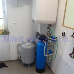 Rodinný dům s vrtanou studnou s nadlimitním množstvím manganu 0,25 mg/l (MH 0,05 mg/l). Do technické místnosti byl nainstalován odmanganovací filtr A35P300. Pro bezproblémový chod filtru byl nainstalován na vstup Atlas filtr 10" se sítovou vložkou a na výstupu Atlas filtr 10" s 5mcr.vložkou. V místě instalace se nachází tlaková nádoba 80 litrů bez vaku, tlakový spínač, potrubí plastové, elektrika a odpad.