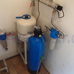 Úprava vody rodinného domu s kopanou studnou. Odstranění mechanických nečistot a zápachu teplé vody. Do technické místnosti byl nainstalován poloautomatický filtr PA 35 AA. Na odstranění bakterií UV lampa LUXE 5 a pro odstranění zápachu teplé vody byla odstraněna anoda z bojleru. Pro bezproblémový chod filtru byl na vstup nainstalován Atlas filtr 10" se sítovou vložkou a na výstup Atlas filtr 10" s 5mcr.vložkou. V místě instalace se nachází potrubí v plastu, elektrika.