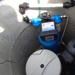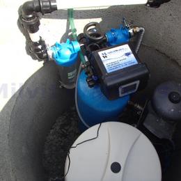 Úprava vody pro potřeby rodinného domu. Vrt obsahuje nadlimitní železo 0,76 mg/l (MH 0,2 mg/l), mangan 0,54 mg/l (MH 0,05 mg/l) a vysokou tvrdost vody 3,97 mmol/l (22,2°N) - DH 2-3,5 mmol/l. Do vrtu byl nainstalován automatický filtr A35EXtreme. Pro bezproblémový chod filtru byl na vstup nainstalován Atlas filtr 10" se sítovou vložkou a na výstup Atlas filtr 10" s 5mcr.vložkou. V místě instalace se nachází tlaková nádoba, tlakový spínač, potrubí v plastu a elektrika. Opad byl vyveden hadicí ven.