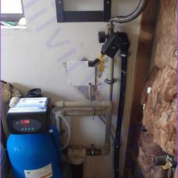 Úprava vody pro rodinný domek s vrtanou studnou. Rozbor vody ukázal extremně vysokou tvrdost vody 5,58 mmol/l (31,2°N, DH 2-3,5 mmol/l). Byl nainstalován změkčovací filtr A35K ve standardním provedením. Zákazník už měl nainstalovaný jeden mechanický filtr, který jsme tedy při montáži využili.