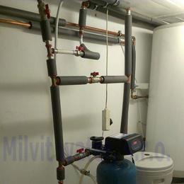 Jedná se o úpravu vody pro potřeby rodinného domu. Tvrdost vody je velice vysoká 4,29mmol/l (24°N)- DH 2-3,5 mmol/l. Zákazník si automatickou úpravnu A35K standard nainstaloval svépomocí do sklepa. Pro bezproblémový chod filtru byl na vstup nainstalován Atlas filtr 10" se sítovou vložkou. V místě instalace je elektrika, potrubí v mědi.