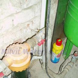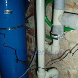 Jedná se o úpravu vody pro potřeby bytového domu. Tvrdost vody je 4,5 mmol/l (25,2°N)-DH 2-3,5 mmol/l. Do sklepa byl nainstalován změkčovací filtr A60K. V místě instalace se nachází tlaková nádoba, tlakový spínač, potrubí v plastu, elektrika a odpad.