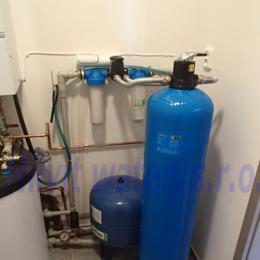 Jedná se o rodinný dům, novostavbu z vrtanou studnou, která zapáchá po zkažených vejcích, více teplá než studená. Do technické místnosti byl nainstalován poloautomatický filtr PA 80 UH. Pro zachycení drobného znečištění byly nainstalovány Atlas filtry 10" se sítovou vložkou a s 5mcr.vložkou. V místě instalace se nachází tlaková nádoba, tlakový spínač, elektrika, potrubí v plastu a odpad do gule.
