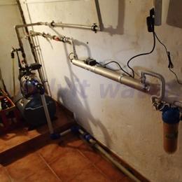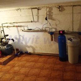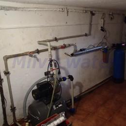 Jedná se o úpravu vody pro potřeby rodinného domu. Vrtaná studna obsahuje nadlimitní železo 0,668 mg/l (MH 0,2 mg/l) a bakterií. Do sklepa byla nainstalována automatická úpravna vody A35EXtreme s UV lampou LUXE 12 na odstranění železa a bakterií. V místě instalace se nachází potrubí v plastu a elektrika. Pro bezproblémový chod filtru byl na vstup nainstalován Atlas filtr 10" se sítovou vložkou a na výstup Atlas filtr 10" s 5mcr.vložkou.