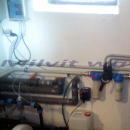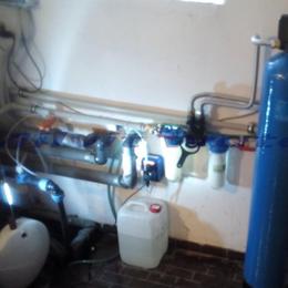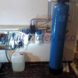 Rodinný dům s vrtanou studno a nadlimitním množstvím železa 0,70 mg/l (MH 0,2 mg/l), manganu 0,58 mg/l (MH 0,05 mg/l) a nadlimitním množství bakterií. Do sklepa jsme nainstalovali odželezňovací a odmanganovací automatický filtr A60D s dávkovacím čerpadlem ET 02/06 časové. Pro bezproblémový chod filtru byl na vstup nainstalován Atlas filtr 10" se sítovou vložkou a na výstup Atlas filtr 10" s 5mcr.vložkou. V místě instalace se nachází tlaková nádoba 40-50 lit., tl.spínač, potrubí v plastu, elektrika a odpad.