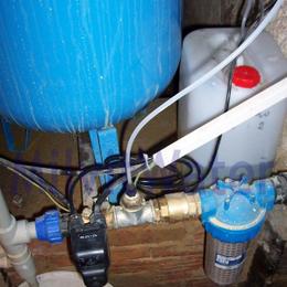 Úprava vody vrtané studny pro potřeby 2 bytů a restaurace. Rozbor vody ukázal na nadlimitní množství železa 0,36 mg/l (MH 0,2 mg/l), manganu 0,247 mg/l (MH 0,05 mg/l) a bakterií. Do sklepa byl nainstalován odželezňovací a odmanganovací filtr A 60 D G1" s dávkovacím čerpadlem pro bakteriologickou nezávadnost vody ET-časové 02/06. V místě instalace se nachází odpad 2m daleko a 2m vysoko, potrubí v plastu, tlaková nádoba a tl.spínač u tl.nádoby. Pro bezproblémový chod filtru byl na vstup nainstalován Atlas filtr 10"G1" se sítovou vložkou a na výstup Atlas filtr 10"G1" s 5mcr.vložkou.