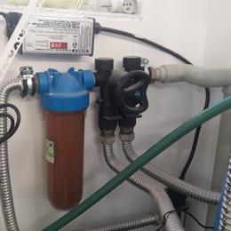 Jedná se o úpravu vody pro čerpací stanici. Dle rozboru vody je železo kolísavé 0,73 - 1,2 mg/l (MH 0,2 mg/l) a kolísavý mangan 0,23 - 0,22 mg/l (MH 0,05 mg/l). Do skládku byl nainstalován automatický filtr A60P300 a UV lampa A8Q pro bakteriologickou nezávadnost. Pro bezproblémový chod filtru byl nainstalován na vstup Atlas filtr 10" se sítovou vložkou a na výstup před UV lampu Atlas filtr 10" s 5mcr.vložkou. V místě instalace se nachází potrubí v plastu, odpad v zemi pod tlakovou nádobou, tl.nádoba 100 lit., tl.spínač a elektrika byla dodělaná.