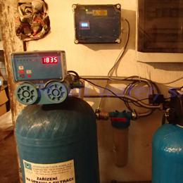 Úprava vody pro rodinný dům a ubytovací zařízení. Dle nového rozboru vody obsahuje vrtaná studna nadlimitní železo 5,4 mg/l (MH 0,2 mg/l) a mangan 0,33 mg/l (MH 0,05 mg/l). Do sklepa k již nainstalovanému UH filtru byl nainstalován filtr A 80 EXtreme. V místě instalace se nachází potrubí v plastu, elektrika a odpad.