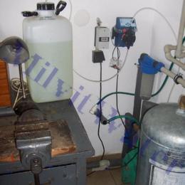 Úprava vody pro rodinný dům se studnou a vlastním dávkovacím čerpadlem. Rozbor vody ukázal na vyšší množství železa 0,69 mg/l (MH 0,2 mg/l), manganu 0,12 mg/l (MH 0,05 mg/l), extrémně nadlimitní množství barvy 102,5 mg/l Pt (20 mg/l Pt), CHSK Mn 13,1 mg/l až 20 mg/l (3 mg/l) a celkový výskyt bakterií. Do technické místnosti byl nainstalován odželezňovací a odmanganovací filtr v poloautomatickém provedení PA 35 D G1" s využitím dávkovacího čerpadla majitelů a bez automatiky filtr na odstranění CHSK Mn 15 UH G1". V místě instalace se nachází odpad a dočišťovací filtr s 5 mcr. vložkou.