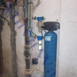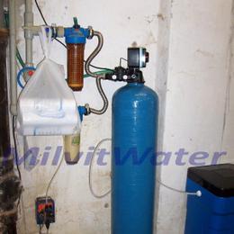 vysoké množství železa 2,38 mg/l (MH 0,2 mg/l), vysoké množství manganu 0,29 mg/l (MH 0,05 mg/l) a vysoké hodnoty síranů 338 mg/l (200 mg/l). Celkové rozvody vody byly v plastu a přívod vody se nacházel v dílně, kam se také nainstaloval odželezňovací filtr A 60 D WG 5000 G1". V místě instalace se nacházel také odpad (HT), elektrika a tlaková nádoba na 30-40 litrů s tlakovým spínačem - tlak 2,9-3,9 bar. Pro ochranu celkového provozu filtru byl nainstalován na vstup a na výstup Atlas filtr 10"G1" s 50 mcr.sítovou vložkou a Atlas filtr 10"G1" s 5 mcr.dočišťovací vložkou. Na desinfekci vody a oxidaci železa bylo k odželezňovacímu filtru připojeno dávkovací čerpadlo