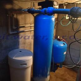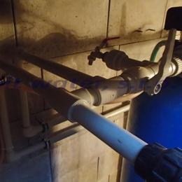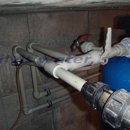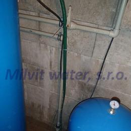 Jedná se o úpravu vody pro potřeby penzionu s průměrnou denní spotřebou 5,0 m3 za den. Studniční voda ukázala v rozboru vody nadlimitní železo 2,33 mg/l (MH 0,2 mg/l), mangan 0,46 mg/l (MH 0,05 mg/l), barvu 25 mg/l Pt (20 mg/l Pt) a zákal 8 ZF (5 ZF). Do šachty, která byla speciálně vybudovaná pro naši filtraci, jsme nainstalovali automatický odželezňovací-odmanganovací a změkčovací filtr A200 EXtreme G2". Dle požadavku zákazníka se instalace provedla před tlakovou nádobu.