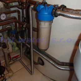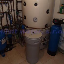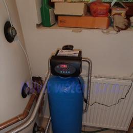 Rodinný dům s kopanou studnou. Byla naměřena extrémně vysoká tvrdost vody 6,00 mmol/l (34°N) - DH 2-3,5 mmol/l a vyšší hodnota železa 0,62 mg/l (MH 0,2 mg/l). Do technické místnosti byl nainstalován automatický filtr A35EXtreme ve standardním provedení. V místě instalace byl již nainstalovaný 1 filtr mechanických nečistot, doinstalovali jsme druhý Atlas filtr mechanických nečistot. Dále se v technické místnosti nachází tlaková nádoba cca 80 lit., tlakový spínač, elektrika, odpad pračková a plastové potrubí.