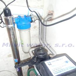 Jedná se o úpravu dvou rodinných domů za sebou (jeden je pro hosty). Vrtaná studna obsahuje nadlimitní množství železa 0,42 mg/l (MH 0,2 mg/l). Do sklepa byl nainstalovaný automatický filtr A35EXtreme ve standardním provedení a pro bakteriologickou nezávadnost vody UV lampa LUXE 12. Pro bezproblémový chod filtru byl nainstalován na vsutp Atlas filtr 10" se sítovou vložkou a na výstup Atlas filtr 10" s 5mcr.vložkou. V místě instalace se nachází tlaková nádoba cca 50-80 lit., tlakový spínač, potrubí v plastu, elektrika a odpad.