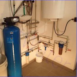 Úprava vody z kopané studny s frekvenčně řízeným čerpadlem, která slouží jako zdroj vody pro chatu s 6 osobami. Ze studniční vody si nechal zákazník vypracovat rozbor vody, v němž byly naměřeny tyto hodnoty: železo 5,1 mg/l (MH 0,2 mg/l), mangan 2,24 mg/l (MH 0,05 mg/l) a organické znečištění CHSK Mn 4,6 mg/l (MH 3 mg/l). Na tuto vodu jsme navrhli a také nainstalovali do sklepa chaty speciálně odželezňovací-odmanganovací a změkčovací filtraci A80EXtreme G1". Filtry na mechanické nečistoty byly už nainstalované, takže jsme pouze vyměnili do nich vložky.