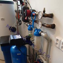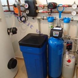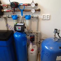 Jedná se o úpravu vody v rodinném domě se studniční vodou. Rozbor vody ukázal na vysokou tvrdost vody 4,6 mmol/l (25,76°N) - DH 2-3,5 mmol/l, nadlimitní železo 1,8 mg/l (MH 0,2 mg/l), mangan 0,67 mg/l (MH 0,05 mg/l), barvy, zákalu a bakterií. Do technické místnosti byl nainstalován Odželezňovací, odmanganovací a změkčovací filtr A 35 EXtreme s dávkovacím čerpadlem ET 02/06 časové pro odstranění bakterií. Pro bezproblémový chod filtru byl na vstup nainstalová Atlas filtr se sítovou vložkou a na výstup Atlas filtr s 5mcr.vložkou. V místě instalace se nachází tl.nádoba 100 lit, spínač tl.nádoba na tl.nádobě, elektrika, odpad a potrubí v plastu.