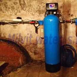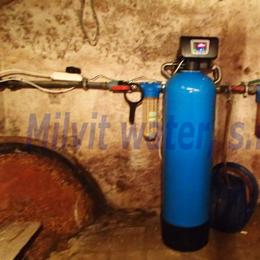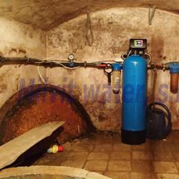 Úprava vody pro potřeby rodinného domu. Rozbor vody ukázal nadlimitní železo 0,52 mg/l (MH 0,2 mg/l), mangan 0,055 mg/l (MH 0,05 mg/l) a vysokou tvrdost vody 4,82 mmol/l (27°N) - DH 2-3,5 mmol/l. Do sklepa byla nainstalována automatická úpravna vody A35EXtreme-AA ve standardním provedení. Pro bezproblémový chod filtru je na vstupu nainstalovaný Atlas filtr 10" se sítovou vložkou a na výstupu Atlas filtr 10" s 5 mcr.vložkou. V místě instalace se nachází plastové potrubí, elektrika. Odpad je veden ven do předsíně, napojení skrz větrací okno, frekvenčně řízené čerpadlo.
