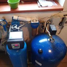 Jedná se o úpravu vody. Rozbor vody zjistil vysokou tvrdost vody 4,35 mmo/l (24°N) - DH 2-3,5 mmol/l, nadlimitní množství železa 0,838 mg/l (MH 0,2 mg/l) a magnanu 0,13 mg/l (MH 0,05mg/l). Do technické místnosti byl nainstalován filtr na odstranění železa, manganu a tvrdosti vody A35EXtreme. Pro bezproblémový chod filtru byl na vstup nainstalován Atlas filtr 10" se sítovou vložkou a na výstup Atlas filtr 10" s 5mcr.vložkou. V místě instalace se nachází tl.nádoba 80 lit., odpad přepadem do zdi z tepelného čerpadla a potrubí v plastu.