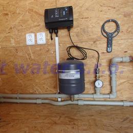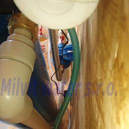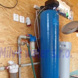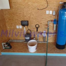 Rodinný dům s vrtanou studnou. Rozbor vody ukazuje na nadlimitní kolísavé hodnoty tvrdosti vody 5,15 mmol/l -5,625 mmol/l (DH 2-3,5 mmol/l), železa 6,38 - 6,548 mg/l (MH 0,2 mg/l), manganu 0,510 - 0,530 mg/l (MH 0,05 mg/l), amonné ionty 0,51 - 0,655 mg/l (MH 0,5 mg/l), CHSK Mn 5,3 - 5,08 mg/l (MH 3 mg/l), barvy 14 - >70,0 mg/l Pt (MH 20 mg/l Pt) a zákalu 38 - 126 ZF (MH 5 ZF). Do garáže byla nainstalována automatická úpravna vody A80EXtreme. Pro bezproblémový chod filtru byl na vstup nainstalován Atlas filtr 10" se sítovou vložkou a na výstup Atlas filtr 10" s 5mcr.vložkou. V místě instalace se nachází potrubí v plastu, elektrika, odpad a zeď do 70 cm beton, výše dřevo. Frekvenčně řízené čerpadlo.