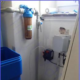 Úprava vody pro potřeby mateřské a základní školy s vrtanou studnou. Z výsledků rozboru vody za rok 2010 - 2013 vyšly nadlimitní tyto prvky: železo 0,22 - 0,41 mg/l (MH 0,2 mg/l), mangan 0,08 - 0,11 mg/l (MH 0,05 mg/l), barva 25,4 - 28,1 mg/l Pt (MH 20 mg/l Pt) a bakterie těchto typů: koliformní 14 KTJ/ml (MH 0 KTJ/ml), počty kolonií při 22°C >300 (max.200 KTJ/ml) a počty kolonií při 36°C 28 - 51 KTJ/ml (max.20 KTJ/ml). Do technického zázemí budovy byl nainstalován odželezňovací-odmanganovací a změkčovací filtr A100 EXtreme G1". Aby filtrace fungovala bez problémů, na vstup byl nainstalován ATLAS filtr 10" se sítovou vložkou. Pro bakteriologickou nezávadnost vody bylo dále nainstalováno dávkovací čerpadlo ET 02/06.