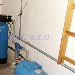 Úprava vody pro chatu, chalupu s vrtanou studnou a dle rozboru vody nadlimitním železem 3,23 mg/l (MH 0,2), manganem 0,65 mg/l (MH 0,05), nižším pH 6,4 (6,5-9,5) a nadlimitním CHSK Mn 4,48 mg/l (MH 3 mg/l). Voda je upravená na kvalitu užitkové vody, dle požadavku zákazníka. Do garáže byl nainstalován automatický filtr A35EXtreme standard. V místě instalace se nachází tlaková nádoba 30 litrů, tl.spínač na tl.nádobě, potrubí v plastu G1" a G3/4", elektika a odpad do trativodu. Pro bezproblémový chod filtru byl použit na vstupu filtr mechanických nečistot a na výstup byl nainstalován Atlas filtr 10" s 5mcr.vložkou.