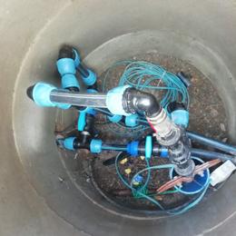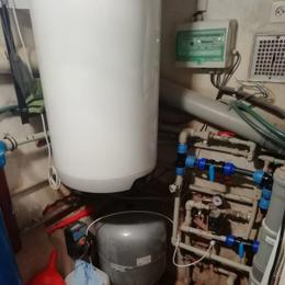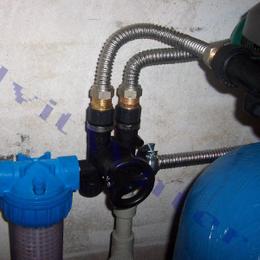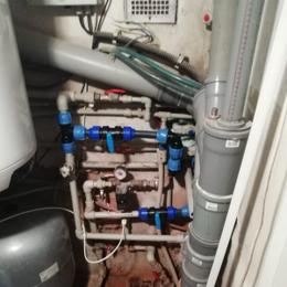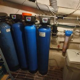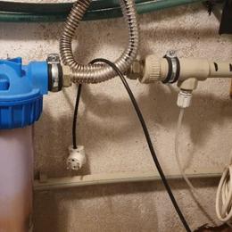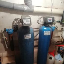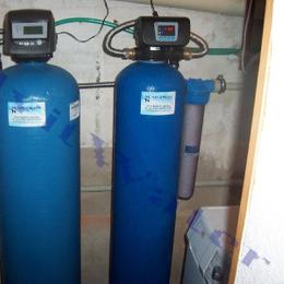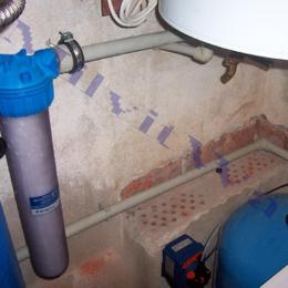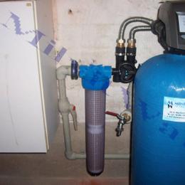 Jedná se o letní sídlo pro 8 osob s vlastní studnou. Rozbor vody ukázal na extrémně vysokou hodnotu železa 12,6 mg/l (MH 0,2 mg/l), vysokou hodnotu manganu 0,28 mg/l (0,05 mg/l), barvy 39 mg/l (MH 20 mg/l) a zákalu 14 ZF (MH 5 ZF). Do technické místnosti za tlakovou nádobu byl nainstalován filtr A 100 P G1" na odstranění železa určený pro závlahu zahrady a filtr A 60 D G1" s dávkovacím čerpadlem ET - časové 02/06 na odstranění železa a manganu určený pro dům. Díky dávkovacímu čerpadlu bude voda bakteriologicky nezávadná. Z vody je díky této filtraci odstraněno železo, mangan, barva a zákal. Na vstup byl nainstalován Atlas filtr 10" G1" se sítovou vložkou a na výstup Atlas filtr 10" G1" s 5 mcr. vložkou.