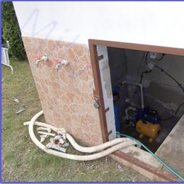 Úprava studniční vody pro potřeby chalupy. Z výsledku rozboru vody byly zjištěny tyto hodnoty: velice vysoká tvrdost vody 3,21 mmol/l (DH 2-3,5 mmol/l), nadlimitní železo 2,75 mg/l (MH 0,2 mg/l), drobně nadlimitní mangan 0,2 mg/l (MH 0,05) a drobně nadlimitní zákal 6 ZF (5 ZF). Do venkovní šachty byl nainstalován automatický odželezňovací-odmanganovací a změkčovací filtr A35 EXtreme G1" ve standardním provedení. Aby filtrace fungovala bez problémů, byl nainstalován na výstup pouze ATLAS filtr 10" s 5mcr.vložkou, protože jeden mechanický filtr na vstupu byl již nainstalovaný. Odpadní hadice byla vyvedena ven na zahradu, což v létě nebude problém, ale v zimě si ji bude muset zákazník dát dovnitř a spustit regeneraci ručně, neboť odpadní hadice nesmí zmrznout. V den montáže bylo pořízeno nové čerpadlo, které bylo při té příležitosti také dopojeno.