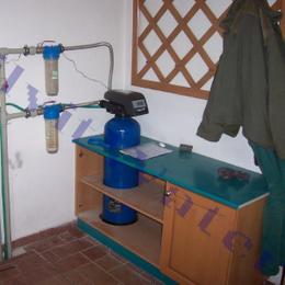 Rodinný dům s velmi železitou vodou ze studny. Z rozboru vody vychází nadlimitní hodnota železa 2,36 mg/l (MH 0,2 mg/l). Do technické místnosti byl nainstalován odželezňovací filtr A 35 D s dávkovacím čerpadlem ET - časové 02/06. Díky omezenému místu si majitel vytvořil skříňku, do které se filtr umístil. V místě instalace se nachází přívod vody. Na celkovou ochranu filtru byl na vstup nainstalován Atlas filtr 10" G1" se sítovou vložkou a na výstup Atlas filtr 10" G1" s 5 mcr.vložkou. Upravená voda je zbavena železa a je bakteriologicky nezávadná.