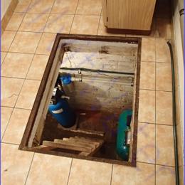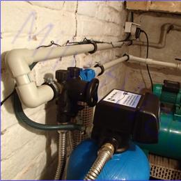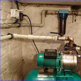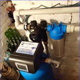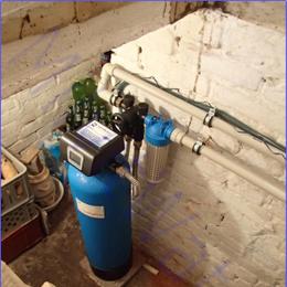 Vrtaná studna u rodinného domu a její chemická úprava. Dle rozboru vody vyšlo drobně nadlimitní železo 0,35 mg/l (MH 0,2 mg/l). Na odstranění této hodnoty železa technici nainstalovali do sklepa pod kotelnou automatický odželezňovací filtr A35P300 G1". Protože ve sklepě již jeden mechanický filtr byl nainstalován, připojili na výstup pouze ATLAS filtr 10" G1" s 5mcr. vložkou. Technici odpadní vodu vyvedli v den montáže jen do jímky, odkud si to zákazník sám dopojí na jiné místo.