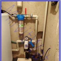 Úprava vody pro potřeby rodinného domu s vrtanou studnou. Ze studniční vody vyšlo nadlimitní železo 0,87 mg/l (MH 0,2 mg/l), nízké pH 6,18 (6,5-9,5) a mírný zápach. Do prostoru pod schody byl umístěn automatický odželezňovací-odmanganovací a změkčovací filtr A35 EXtreme G1" v kabinetovém provedení. Aby filtr fungoval bezproblémově, nainstalovali jsme ještě na vstup Atlas filtr 10" se sítovou vložkou a na výstup Atlas filtr 10" s 5mcr.vložkou na celkové dočištění. Potrubí plastové v G1" a odpad byl vyřešen španělskou zátkou do odpadu.