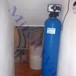 Rodinný dům s vlastní vodou z kopané studny. Z rozboru vody byla zjištěna středně vysoká vodivost vody 64 mS/m (MH 125 mS/m), vysoký zákal 5,6 ZF (5 ZF) a velmi vysoké množství bakterií - používáním vody, kdy je ve vodě přirozený výskyt bakterií, se můžou tyto bakterie pomnožovat v nádobách, ve kterých voda stojí nebo se zahřívá - tlaková nádoba nebo zásobníky teplé vody. Proto může teplá voda po nějaké době používání takovéto vody zapáchat. Pro úpravu vody byl do technické místnosti pod schody instalován filtr A 60 K, dávkovací čerpadlo na odstranění bakterií a dva atlas filtry na odstranění mechanických nečistot a kalu.