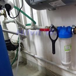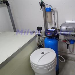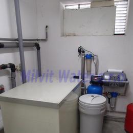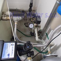 Jedná se o úpravu vody pro kancelář a sklad. Rozbor vody ukázal nadlimitní množství dusičnanů 66 mg/l (MH 50 mg/l a pro kojence do 15 mg/l), tvdost vody je dost vysoká 2,59 mmol/l (14,5°N) - DH 2-3,5 mmol/l. Do technické místnosti byla nainstalována automatická úpravna vody A35K-AN ve standardním provedení na snížení dusičnanů a tvrdosti vody a na bakteriologickou nezávadnost vody byla nainstalována UV lampa LUXE 12. Pro bezproblémový chod filtru byl na vstup nainstalován Atlas filtr 10" se sítovou vložkou a na výstup Atlas filtr 10" s 5mcr.vložkou. V místě instalace se nachází potrubí v plastu, elektrika, odpad.