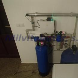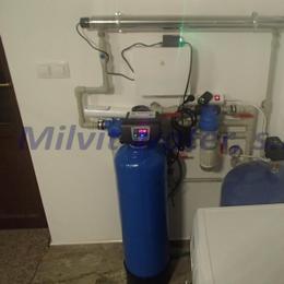 Jedná se o rodinný dům s vrtanou studnou. Rozbor vody ukázal na nadlimitní mangan 0,11 mg/l (MH 0,05 mg/l), nadlimitní dusičnany 65,3 mg/l (MH 50 mg/l, kojenecká voda do 15 mg/l), dusitany 0,79 mg/l (MH 0,5 mg/l) a nadlimitní množství bakterií. Do technické mísnosti byl nainstalován automatický filtr A35K-AN PLUS a UV lampa LUXE 12. Pro bezproblémový chod filtru byl na vstup nainstalován Atlas filtr 10" se sítovou vložkou a na výstup - před UV lampu Atlas filtr 10" s 5mcr. vložkou. V místě instalace se nachází potrubí v plastu, tlaková nádoba 80-100 lit., tlakový spínač, elektrika, odpad pračkový a cihlová zeď.