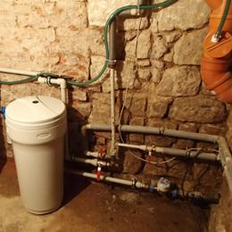 Pro potřeby rodinného domu bylo požadováno snížení tvrdosti obecní vody. Nainstalována byla filtrace A35K standard, která snížila vstupní tvrdost vody 4,29 mmol/l na požadované limitní hodnoty DH 2 - 3,5 mmol/l. Spotřeba vody je kalkulována pro 3 osoby, filtr byl umístěn ve sklepě.
