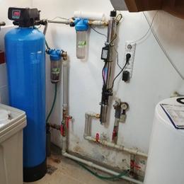 Snížení tvrdosti vody, železa a manganu centrálně, snížení síranů centrálně, odstranění bakterií centrálně filtrem A100 EXtreme-K + UV LUXE 12 - Měšic