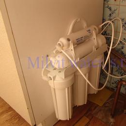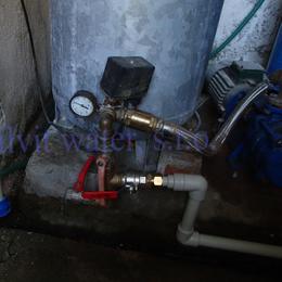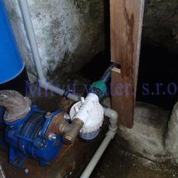 Jedná se o úpravu vody z kopané studny pro potřeby rodinného domu. Rozbor vody ukázal vysokou tvrdost vody 3,95 mmol/l (22°N) - DH 2-3,5 mmol/l, nadlimitní železo 1,255 mg/l (MH 0,2 mg/l), mangan 0,492 mg/l (MH 0,05 mg/l), dusičnany 118,5 mg/l (MH 50 mg/l, pro kojence do 15 mg/l), barva 111 mg/l Pt (MH 20 mg/l Pt), zákal 25,2 ZF (MH 5 ZF) a bakterie. Do sklepa byl nainstalován filtr A35EXtreme pro odstranění nadlimitního železa, manganu a tvrdosti vody, UV lampa SC 12 pro odstranění bakterií a pro snížení dusičnanů byla nainstalovaná Reverzní osmóza do kuchyňské linky. Ve sklepě se nachází tlaková nádoba 160 litrů, tl.spínač u tl.nádoby, potrubí v plastu G5/4", elektrika, odpad - svod dešťové vody do drenáže a zeď kámen. Kuchyňská linka je z dřevotřísky a baterie dřezová, vyvedená z desky. Pro bezproblémový chod filtru byl na vstupu použit již nainstalovaný filtr na odstranění mechanických nečistot a na výstup jsme nainstalovali Atlas filtr 10" s 5mcr.vložkou.