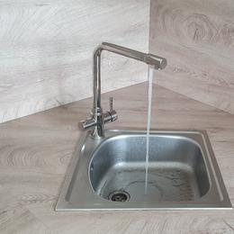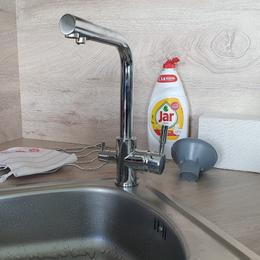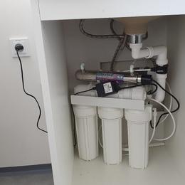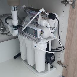 - navržené zařízení - reverzní osmóza do kuchyňské linky, 2x malá UV lampa, 2x třícestná baterie, velká reverzní osmóza ROKR150, tlaková nádoba 35 litrů.