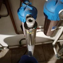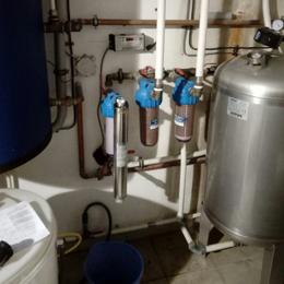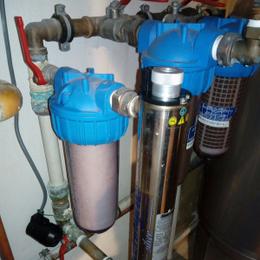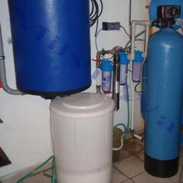 Dvougenerační rodinný dům s vlastní vodou ze studny. Rozborem vody byla naměřena vysoká hodnota vodivosti 119 mS/m (MH 125 mS/m), vyšší hodnota železa 0,31 mg/l (MH 0,2 mg/l), vyšší hodnota manganu 2,9 mg/l (MH 0,05 mg/l), vysoká hodnota CHSK-Mn 7,9 mg/l (3 mg/l) a vysoké hodnoty barvy a zákalu. Do technické místnosti byl nainstalován změkčovací, odželezňovací a odmanganovací filtr A 100 K WG 5600 a na dočištění a ochraně celkového systému byl nainstalován Atlas filtr P3 10" včetně 50 mcr.vložky a Atlas filtr P3 10" s 5 mcr. dočišťovací vložkou. Na odstranění CHSK-Mn a případných bakterií byla nainstalována UV lampa 1,4 m3/hod. a na dočištění Atlas filtr P3 10" s 5 mcr. dočišťovací vložkou.