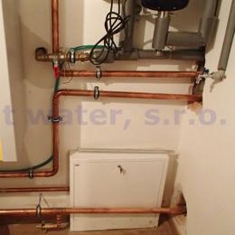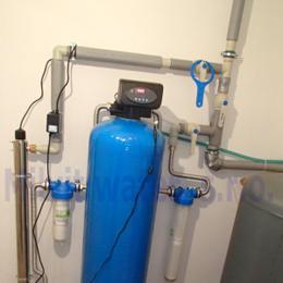 Jedná se o úpravu vody pro potřeby rodinného domu. Rozbor vody ukázal na extrémně tvrdou vodu 7,8 mmol/l (43,68°N)- DH 2-3,5 mmol/l, nadlimitní mangan 0,08 mg/l (MH 0,05 mg/l) a nadlimitní barvu, zákal a bakterie. Do technické místnosti byl nainstalován filtr A80K-AA a UV lampa LUXE 12. Pro bezproblémový chod filtrační sestavy byl na vstup nainstalován Atlas filtr 10" se sítovou vložkou a na výstup Atlas filtr 10" s 5mcr. vložkou. V místě instalace se nachází potrubí v plastu, elektrika, odpad, tlaková nádoba a tlakový spínač.