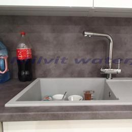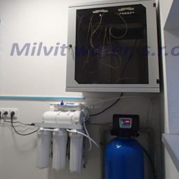 Jedná se o úpravu vody pro potřeby bytového domu a kanceláře. Tvrdost vody je 6,96 mmol/l (39°N)-DH 2-3,5 mmol/l, dusičnany 220 mg/l, dusitany 1,2 mg/l, konduktivita 161,8 mS/m, chloridy 183 mg/l. Do technické místnosti byl nainstalován změkčovací filtr A60K a RO ME 50 a pro tři odběrná místa byly nainstalované 3-cestné baterie. V místě instalace se nachází tlaková nádoba 120 lit., tlakový spínač, potrubí v plastu, elektrika a odpad v HT.