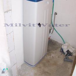 Jedná se o úpravu vody v rodinném domě. Tvrdost vody je extrémně vysoká 5,8 mmol/l (32,4°N) - DH 2-3,5 mmol/l. Na WC byl nainstalován změkčovací filtr v ultra tenkém provedení A30K Slim G1". Pro bezproblémový chod filtru byl nainstalován na vstup Atlas filtr 10" G1" se sítovou vložkou. V místě instalace se nachází potrubí v plastu, elektrika, přívod vody a odpad v HT 110. Majitel filtru si může kdykoliv podle potřeby nastavit tvrdost vody. Protože zákazník nepočítal při stavbě domu s nutností následné úpravy vody, bylo zařízení instalováno v tomto tenkém Slim provedení v šířce pouhých 22cm vedle budoucí toalety a připojeno na hlavní potrubí vedené za toaletou. Funkci toalety uvedená filtrace nebude bránit.